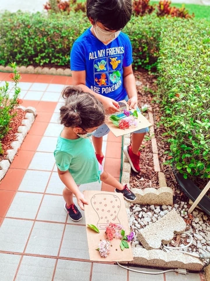 If you are like me and all about the DIY you can head on over to canva and make a quick scavenger hunt for whatever you plan on dong. I made one for a zoo trip. I have also made some for nature walks or just a wlak arpund the neighboorhodd. Its a hood way to get out the house and keep the kids engaged. If you are not one for DIY then check out goggle or etsy for some that people have made. I like usuing both pictures and words becuse that gives out non readers a little bit of independce as they are looking for the items. Here is the link to the zoo scavenger hunt I made. Another fun project is getting a small piece of cardbord and drawing a vase on it, poke some holes and go somehere that you can pick small flowers. weeds, grass, leaves and make a living vase. This one was a hit in our home